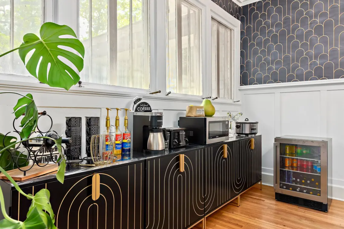 KITCHEN: dishwasher, stove/oven, refrigerator, microwave, cooking basics, dishware & flatware, beverage fridge, coffee maker & grinder, blender, toaster, crockpot, spices, trash bags & paper towels